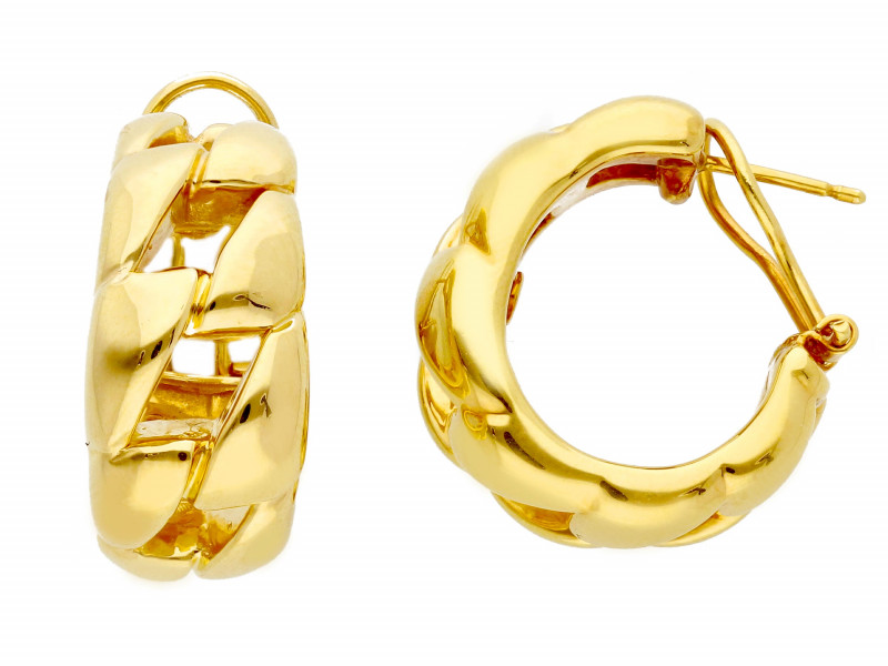 Orecchini donna perno clips in oro giallo maglia catena grumetta