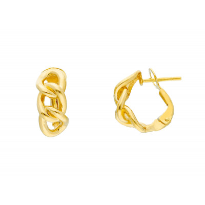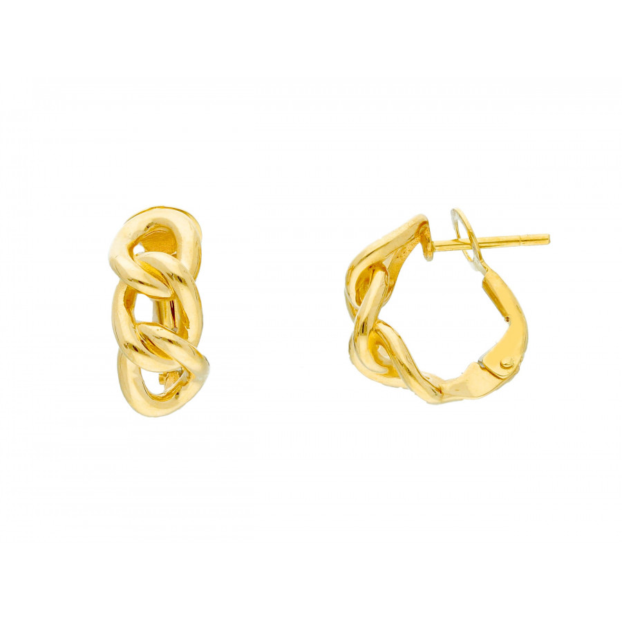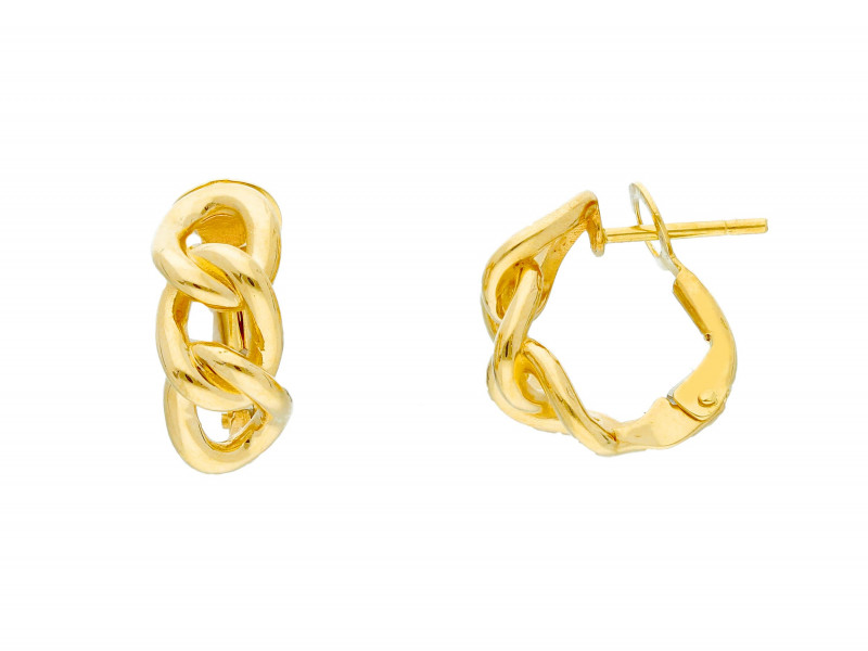 Orecchini donna in oro giallo perno clips maglia catena grumetta