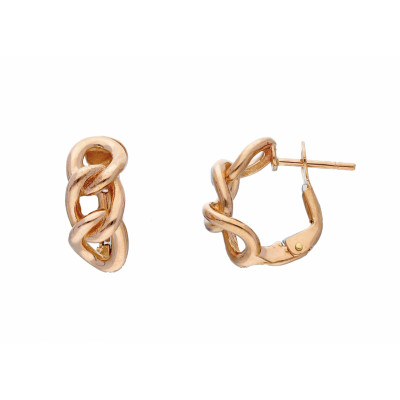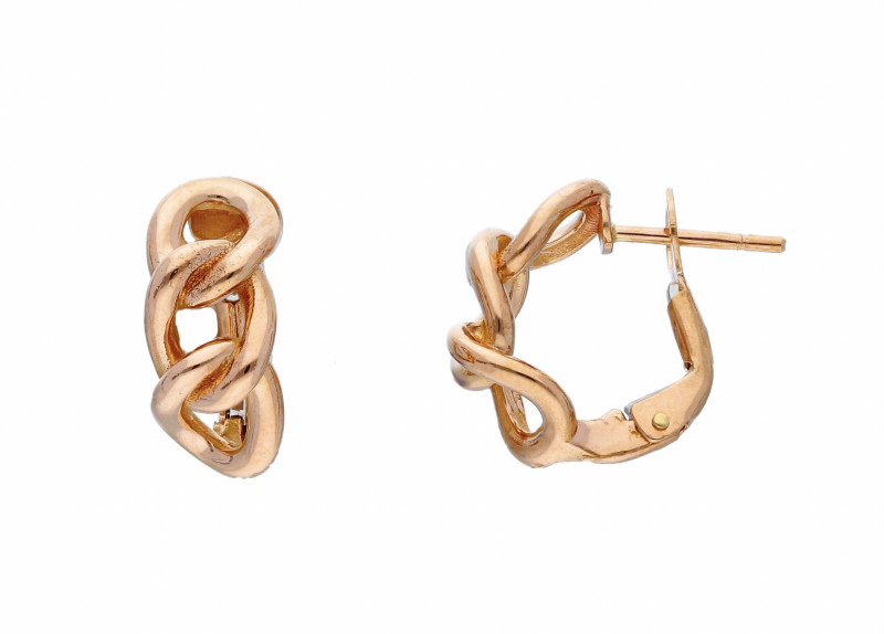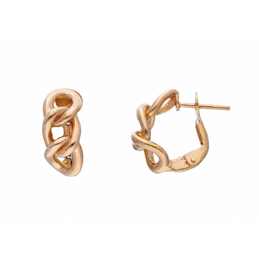 Orecchini donna in oro rosa perno clips maglia catena grumetta