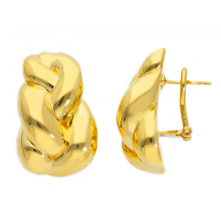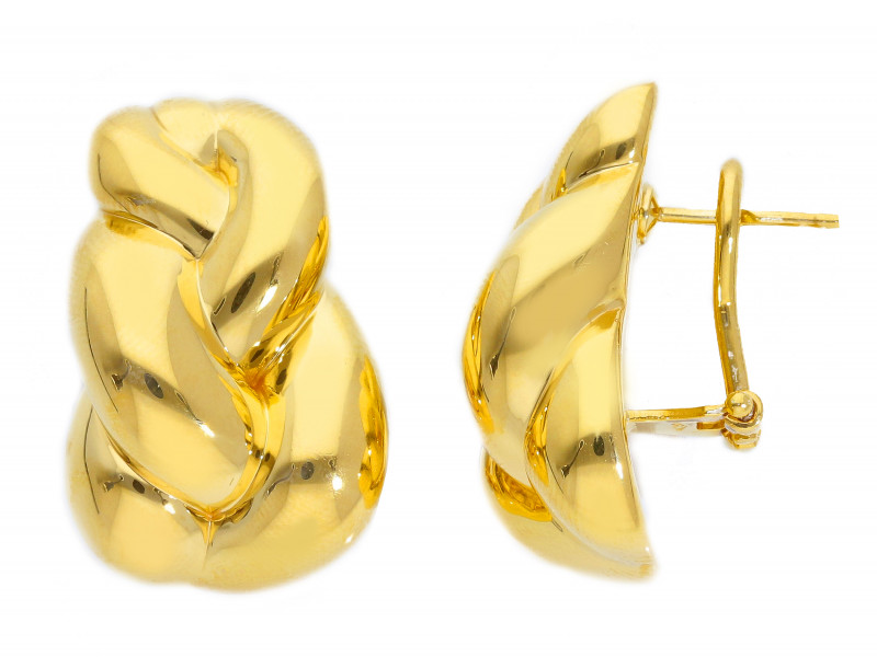 Orecchini donna in oro giallo perno clips maglia catena grumetta