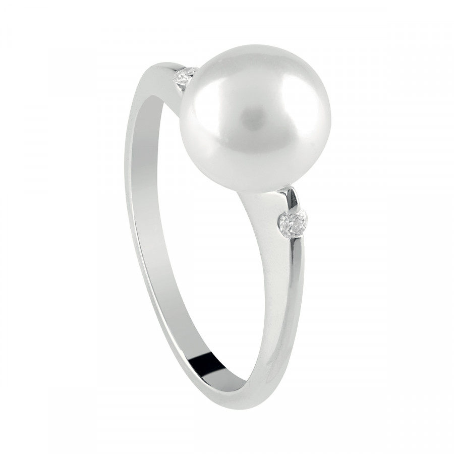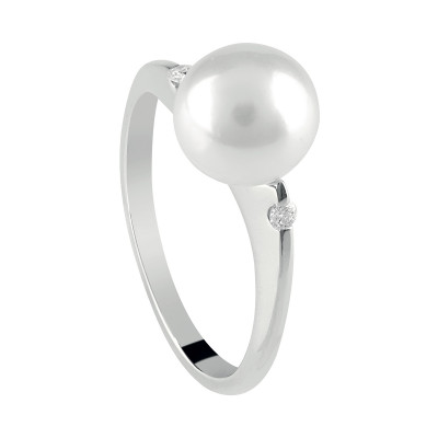 Anello in oro bianco con diamanti e perla freshwater, della collezione Anelli Perla di Salvini.