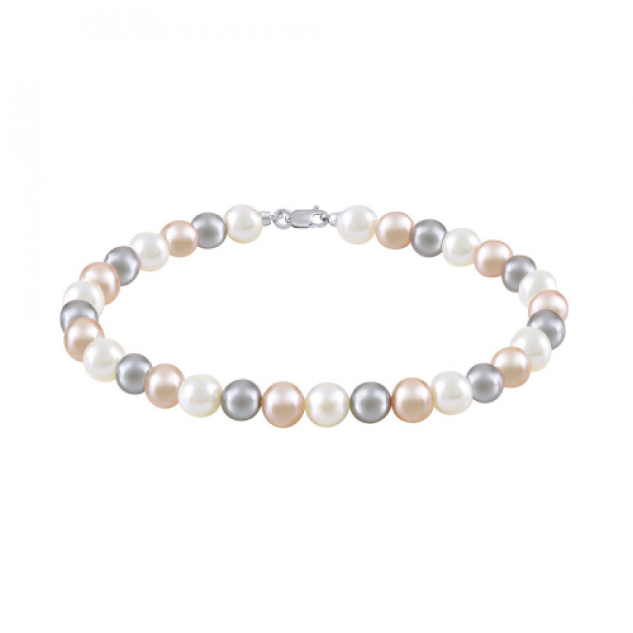 Bracciale Bliss Paradise in oro bianco e perle multicolor, sfere, 5.5 mm, lunghezza 18 mm