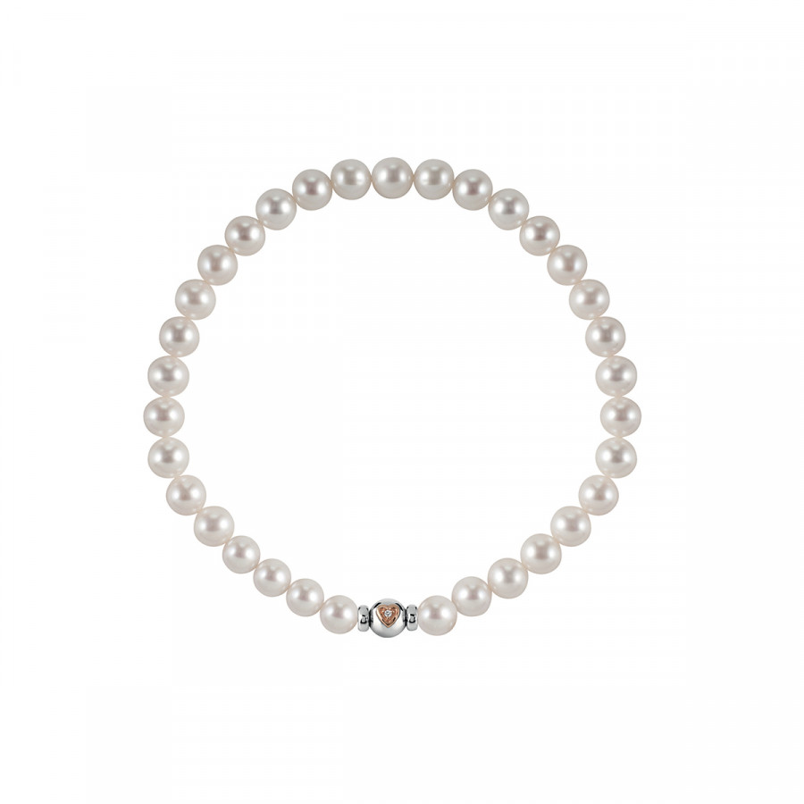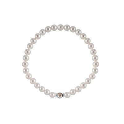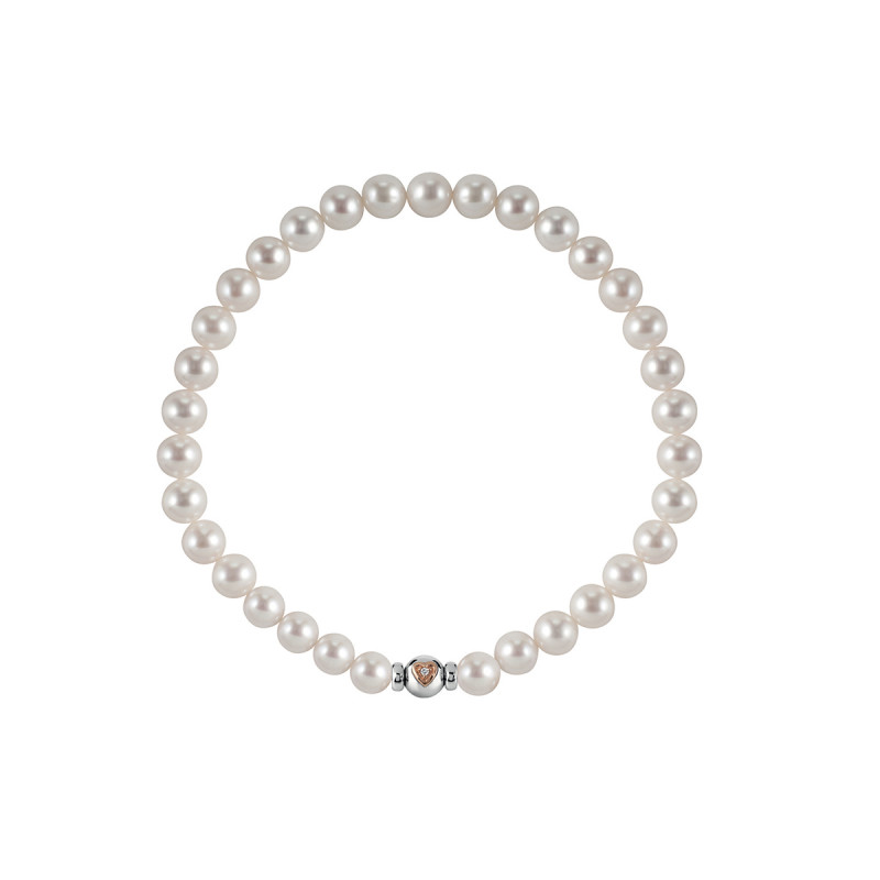Bracciale di perle giapponesi bianche con chiusura in oro bianco, oro rosa e diamante, della collezione Le Perle Salvini di Salvini.