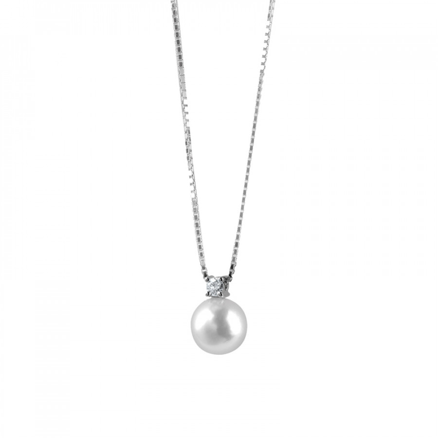 Collana in oro bianco con diamanti e perla della collezione Le Perle di Damiani.