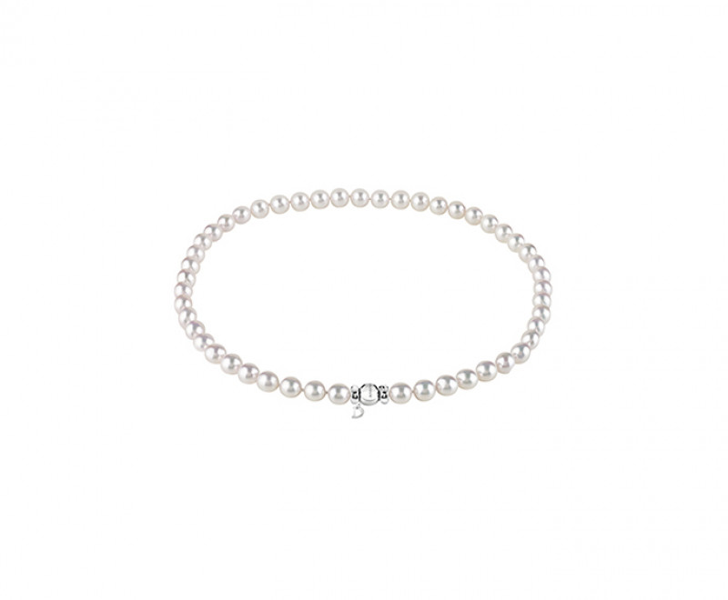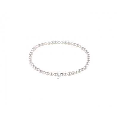 Collana oro bianco, perle 8.00/8.50 mm e diamanti