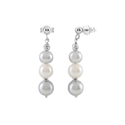 Orecchini Paradise oro bianco con perle bianche e grigie