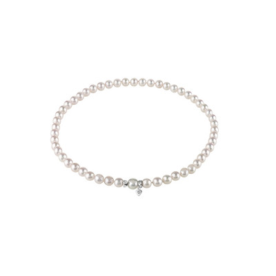Collana Salvini gioielli in oro bianco con perle giapponesi bianche e diamante, della collezione Le Perle Salvini