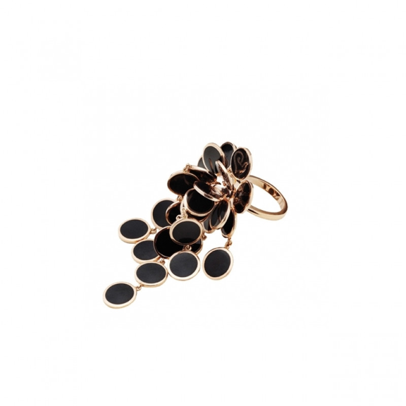 Qui troviamo l'anello a cascata appartenente alla collezione Chantecler Paillettes in oro rosa 18kt e smalto nero.
