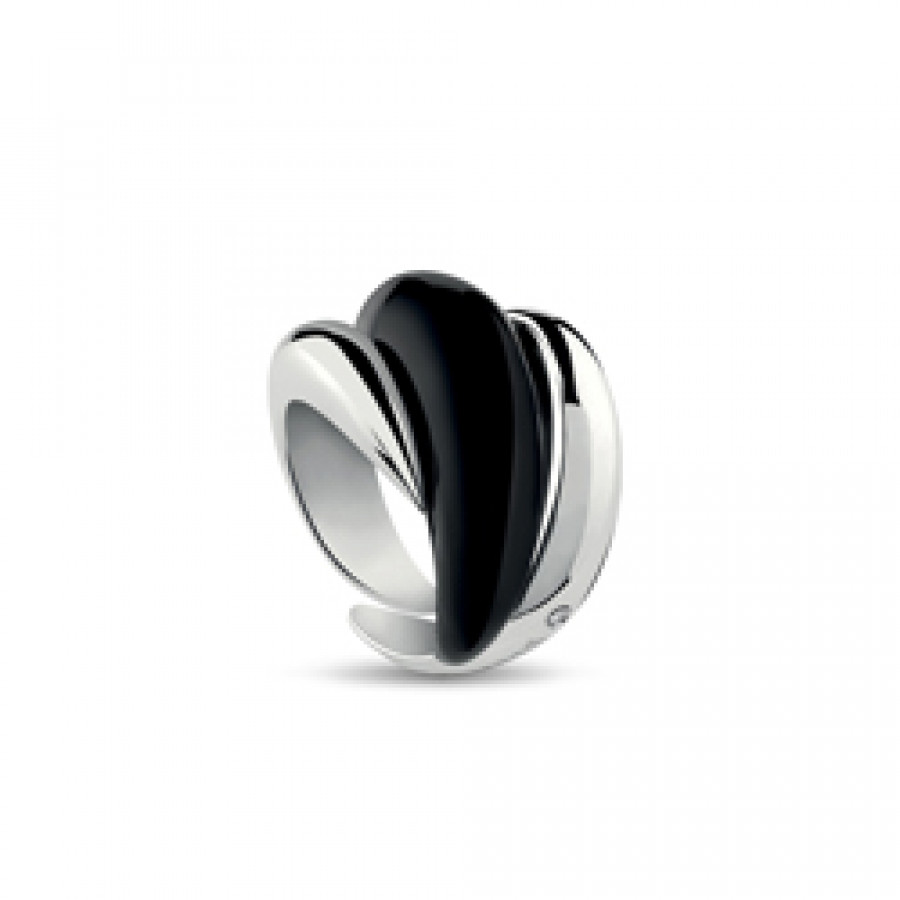 Anello Damiani Gomitolo in argento e diamante con inserti in smalto nero