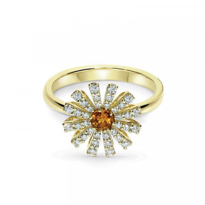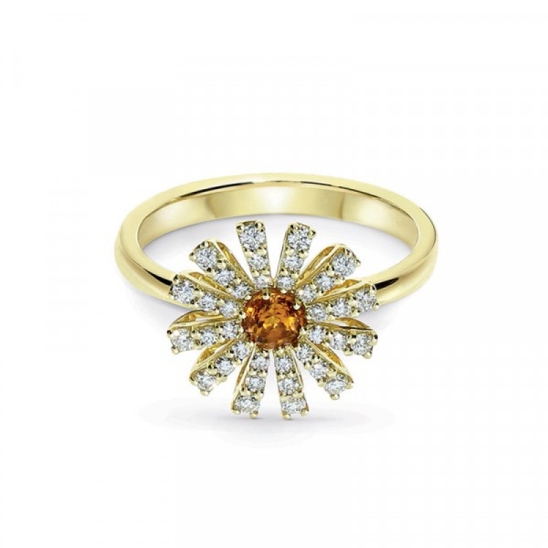 Anello Damiani Margherita in oro giallo con diamanti e quarzo citrino