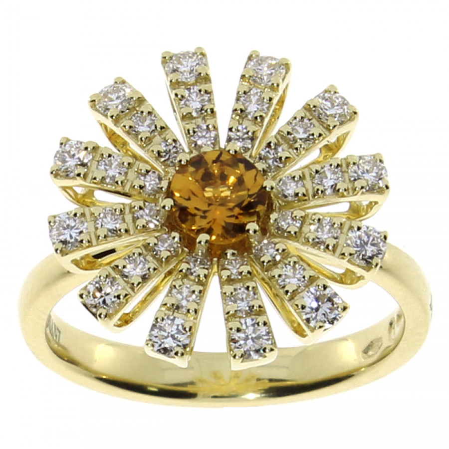 Anello Damiani Margherita in oro giallo con diamanti e quarzo citrino