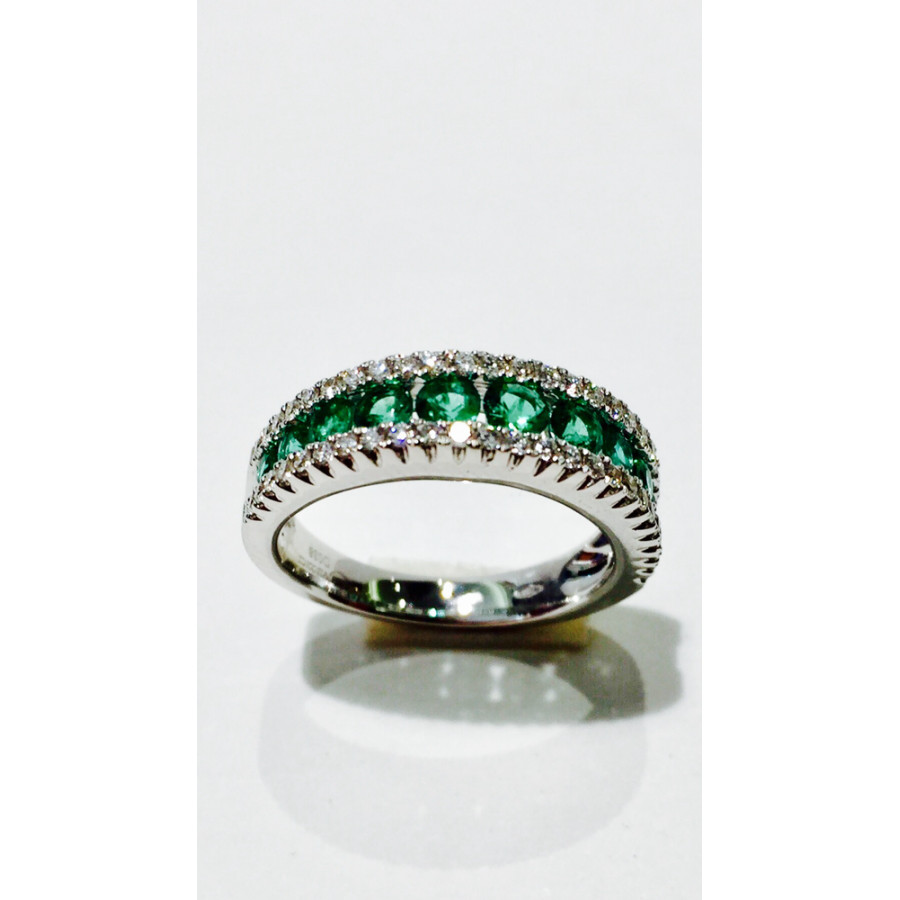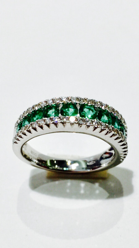 Anello in oro 750 gr.5,10 Giorgio Visconti con diamanti a taglio brillante ct.0.38 colore-g- purezza vs e al centro smeraldi per un peso complessivo ct.0.68