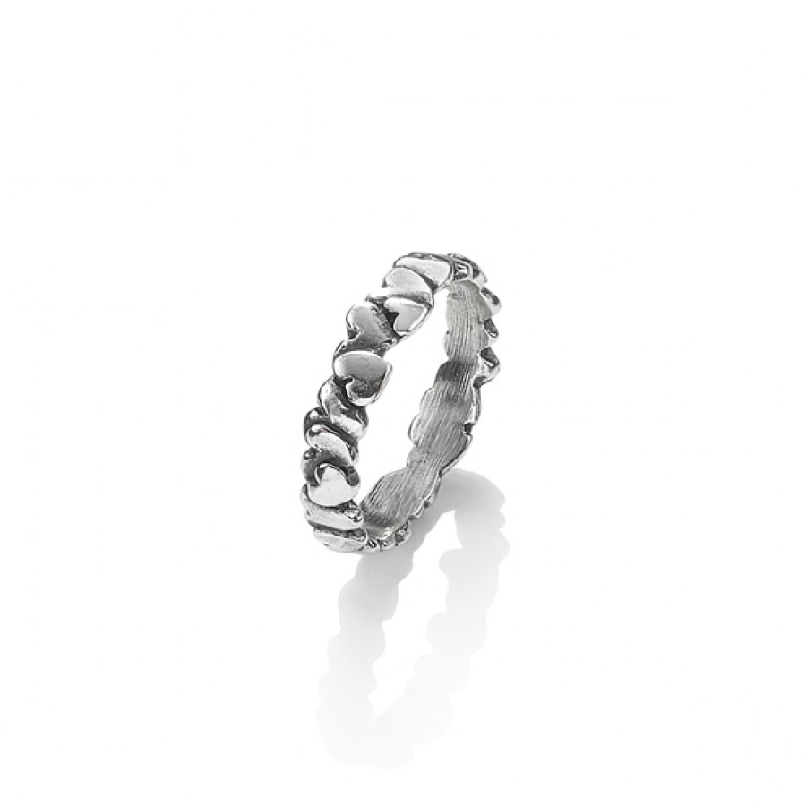 Anello della linea Cuori firmato Giovanni Raspini appartenente alla collezione Perlage, Intrecci, Corone.