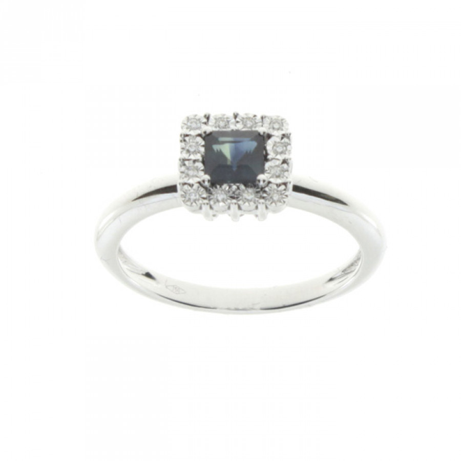 Anello Bliss Regal in Oro Bianco, diamanti e Zaffiro