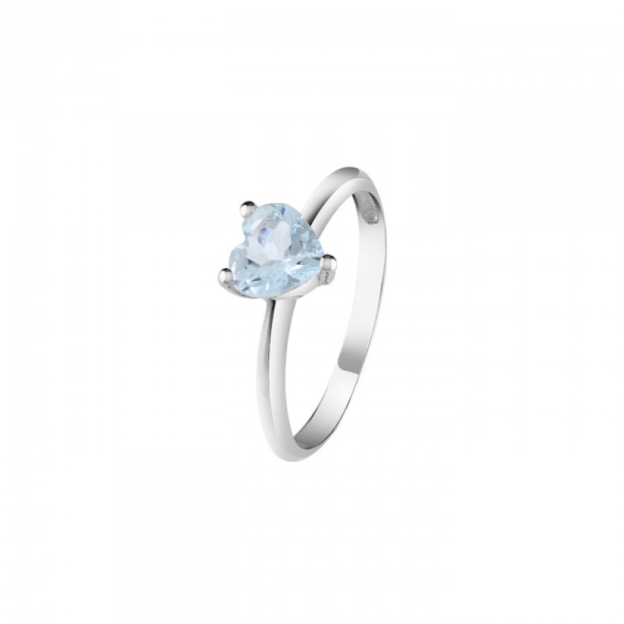 Anello Bliss Stephanie in oro bianco 18 kt e acquamarina 0,11 ct taglio cuore