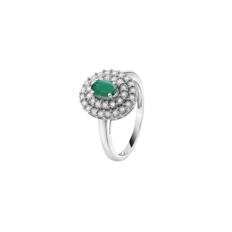 Anello Bliss Regal in oro bianco 18 kt diamanti 0,14 ct e smeraldo 0,6 ct