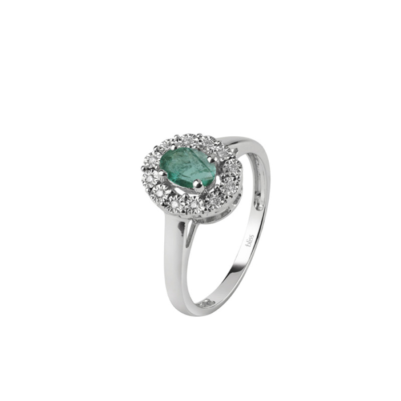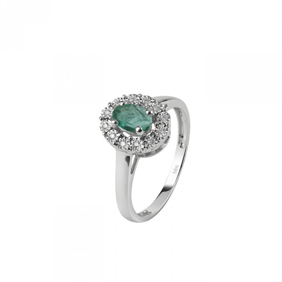 Anello Bliss Regal in oro bianco 18 kt diamanti 0,06 ct e smeraldo 0,8 ct