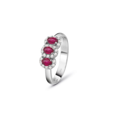 Anello Bliss in oro bianco 18k, diamanti 0.17 ct. e tre rubini 0,55 ct.