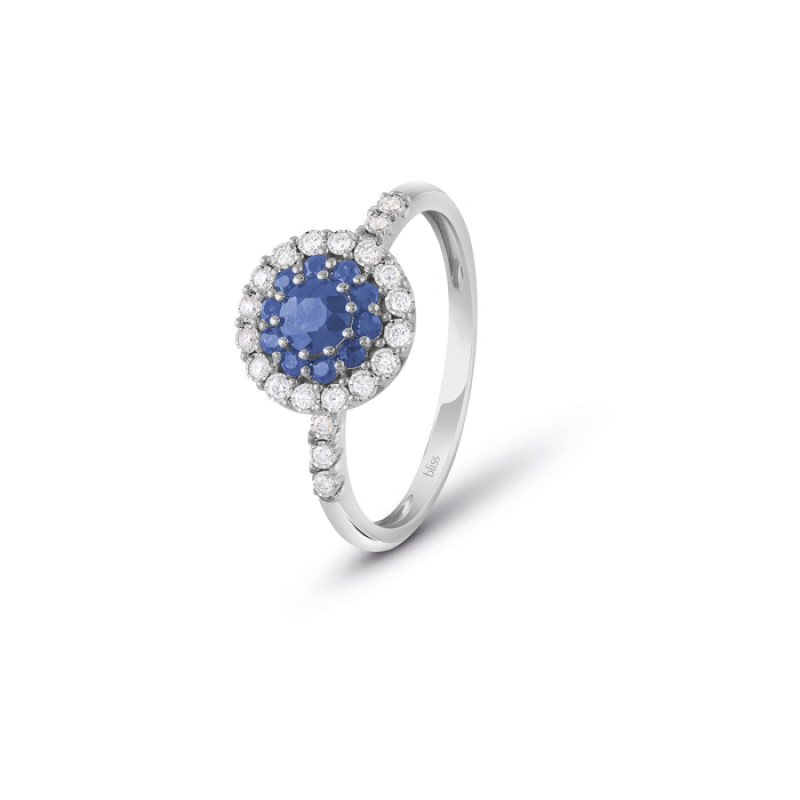 Anello Bliss Prestige in oro bianco 18 kt con diamanti 0,11 ct e zaffiri 0,6 ct