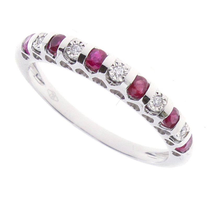 Anello in oro Bianco 18 k e Brillanti 0.3 ct. GH e Rubini 0.3 ct.