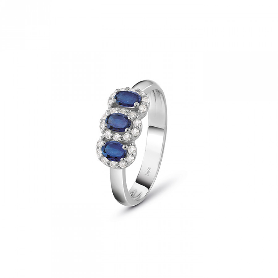 Anello Bliss in Oro Bianco, diamanti e zaffiri, della collezione Dream, della famiglia La Gioielleria.