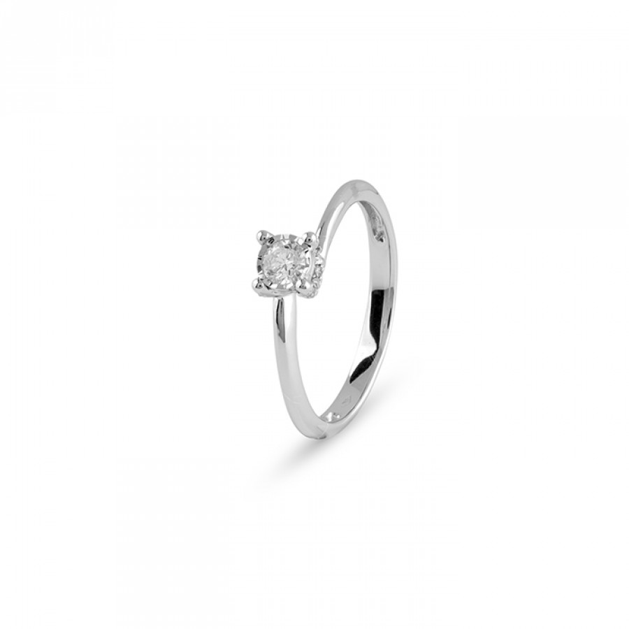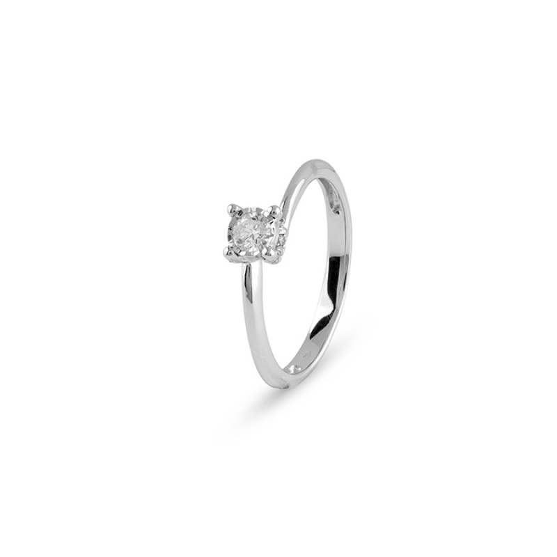 Anello solitario in Oro Bianco e Diamanti 0,14 ct. G SI con diamante centrale ct. 0,1 G Si