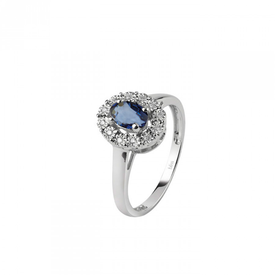 Anello in oro bianco 18 k, 0,06 ct. di Diamante e 0,95 ct. di Zaffiro