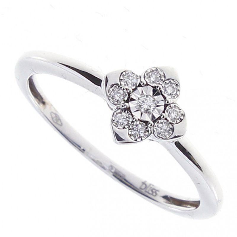 Bliss Rugiada Anello in Oro Bianco 18 kt a forma di fiore con brillanti.