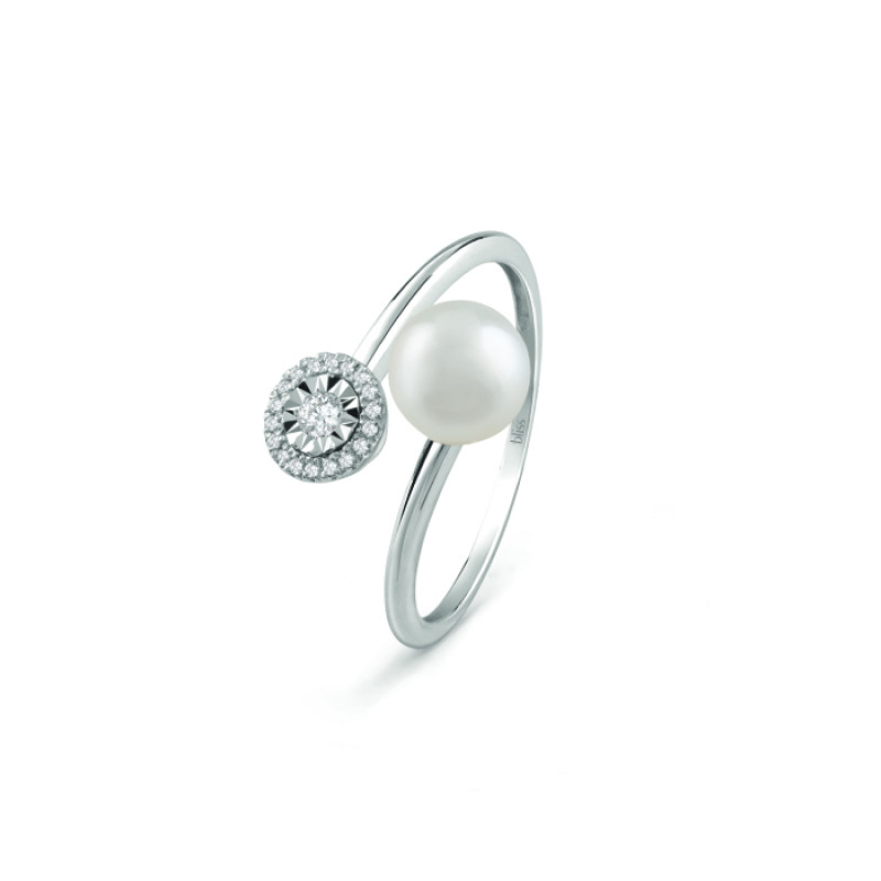 Anello Rugiada in oro bianco, perle e diamanti 0.08 ct.