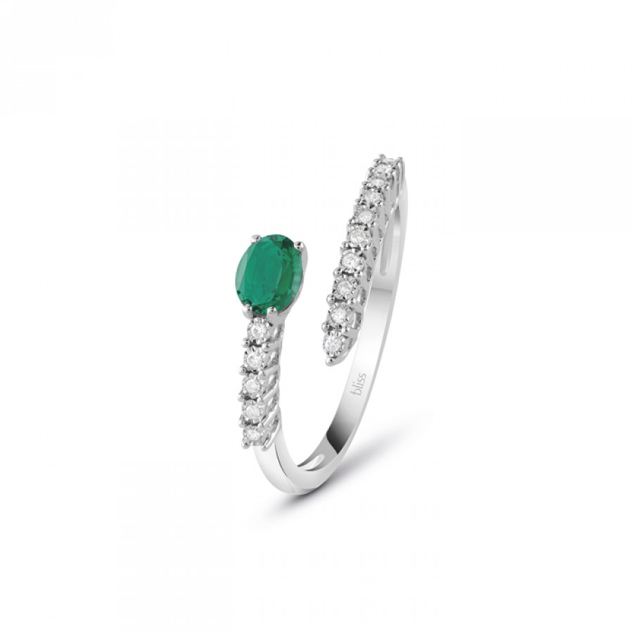 Anello Bliss Rugiada Colors in oro bianco 18kt, Smeraldo 0,35 ct e Diamanti 0,06 ct Gh misura 13