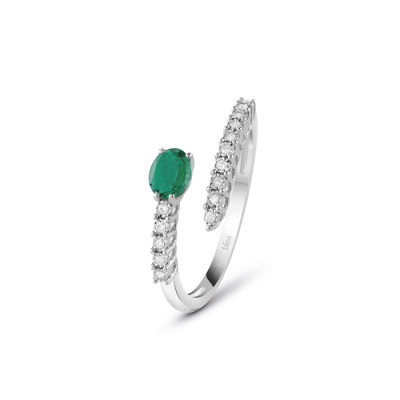 Anello in oro bianco 18kt, smeraldo e diamanti della collezione Bliss Rugiada Colors.