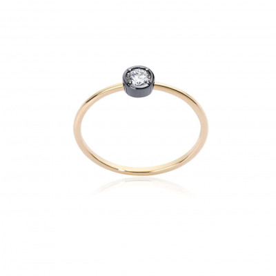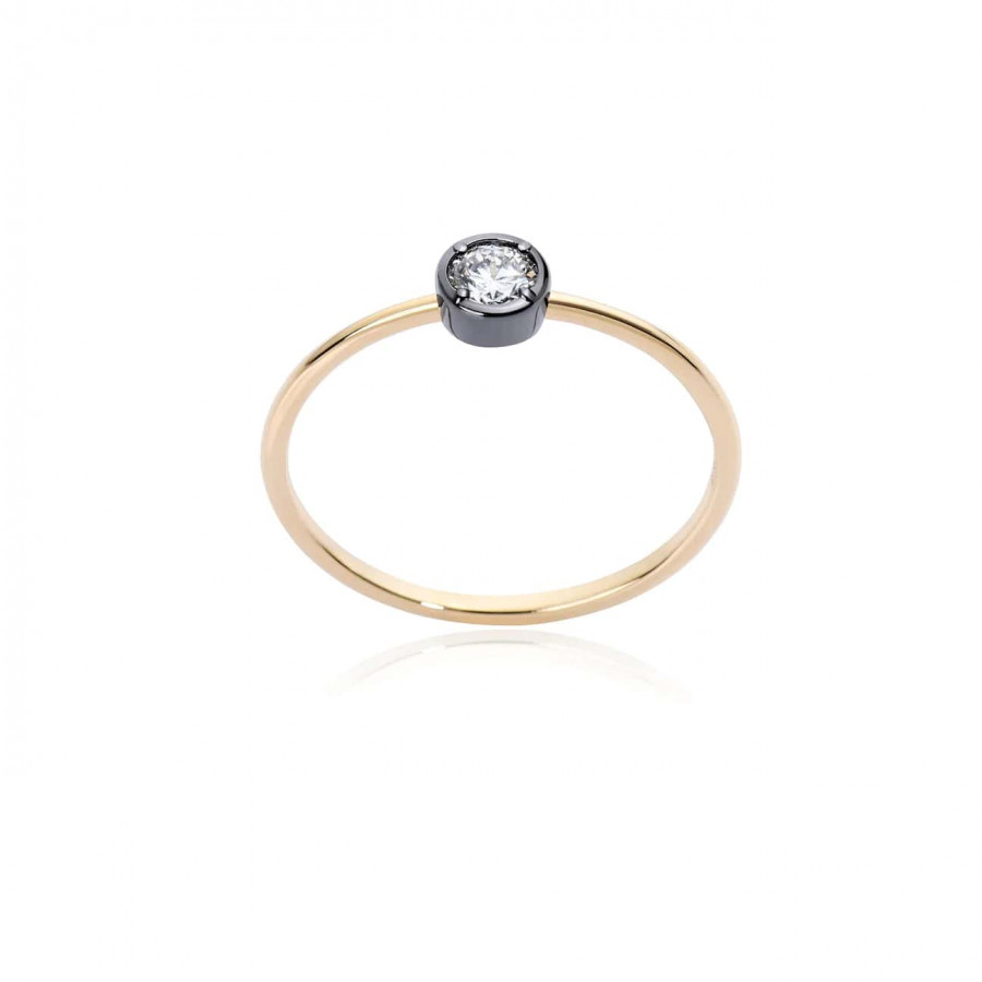 Anello Burato Gioielli in oro giallo 18 kt e diamanti L Black BEE Ring della collezione Solitaire.