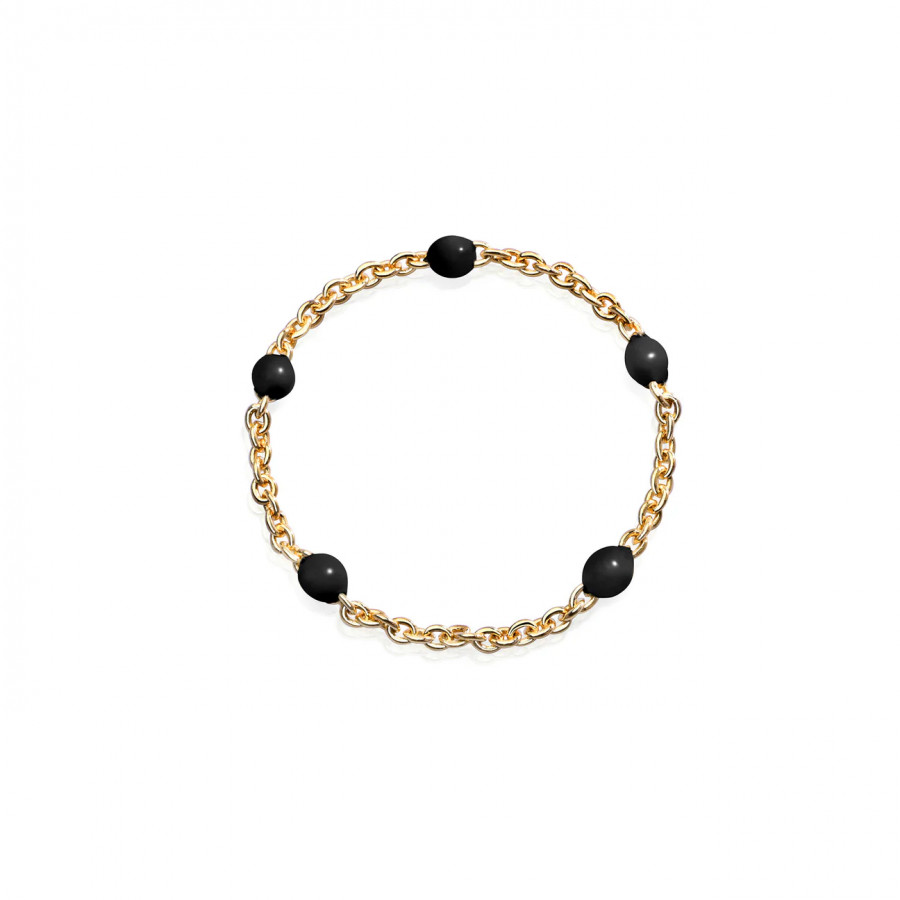 Anello Burato Gioielli in oro giallo 18 kt e sfere in resina nera della collezione Dots