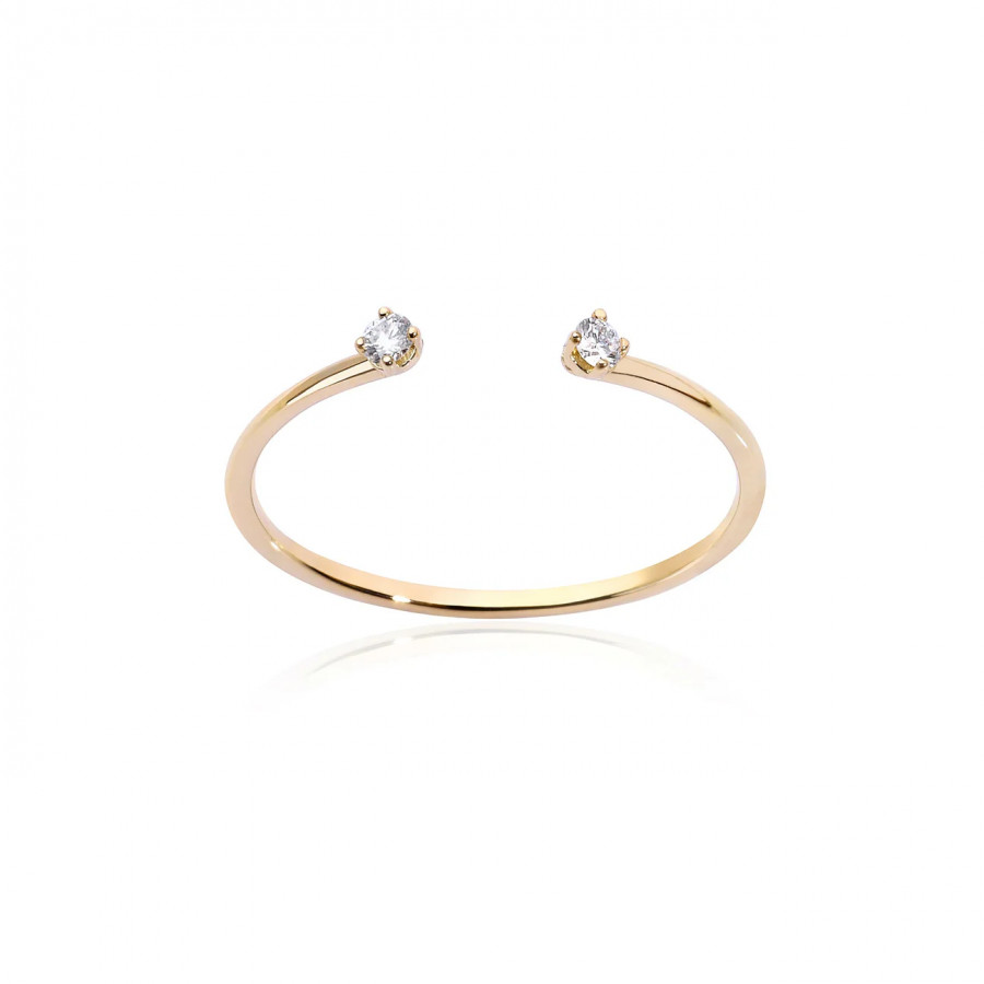 Anello in oro giallo 18 kt e 2 diamanti taglio brillante ct. 0.06 F VVS