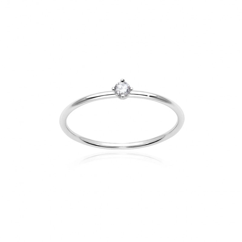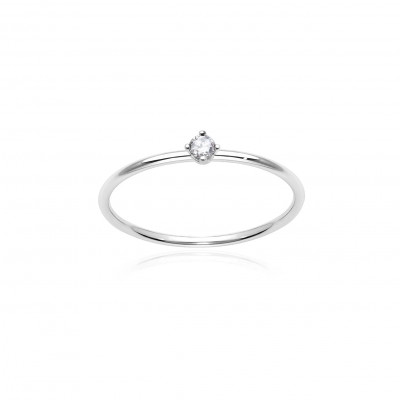 Anello in oro bianco 18 kt e diamante taglio brillante ct. 0.05 F VVS
