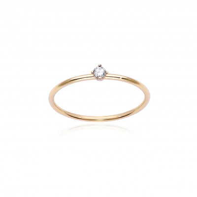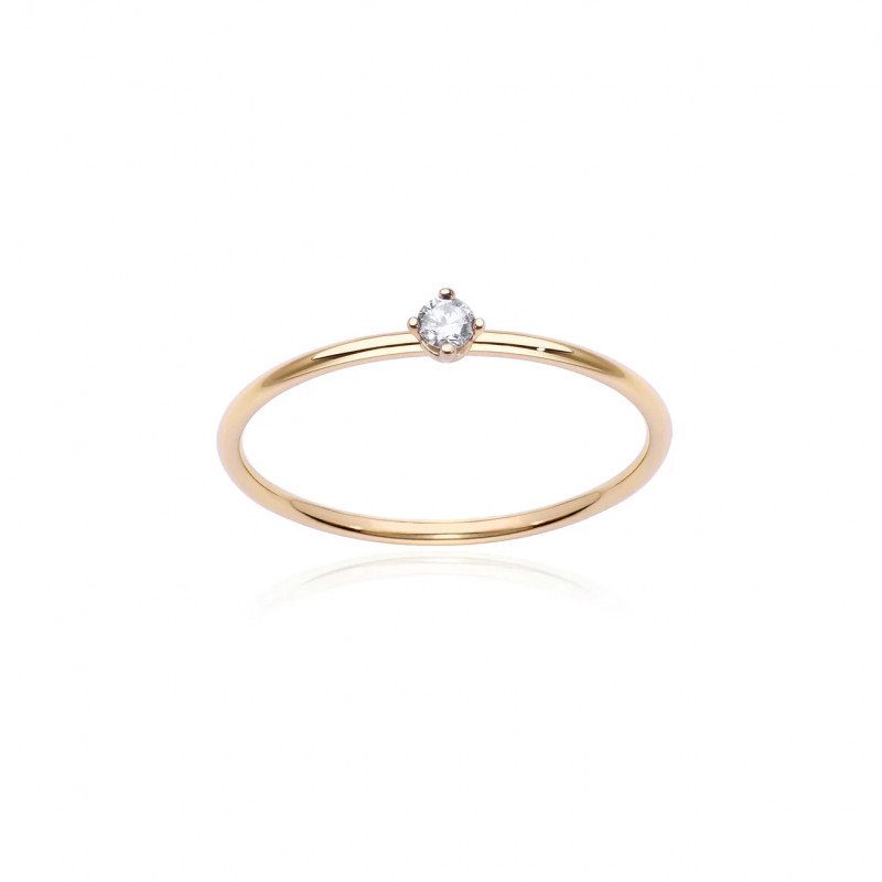 Anello in oro giallo 18 kt e diamante taglio brillante ct. 0.05 F VVS
