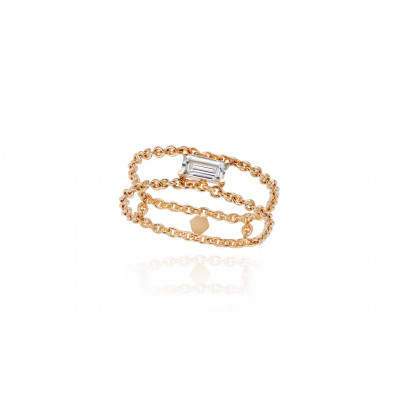 Anello in oro giallo 18 kt a catena soft e diamante taglio baguette ct. 0.20 F VS