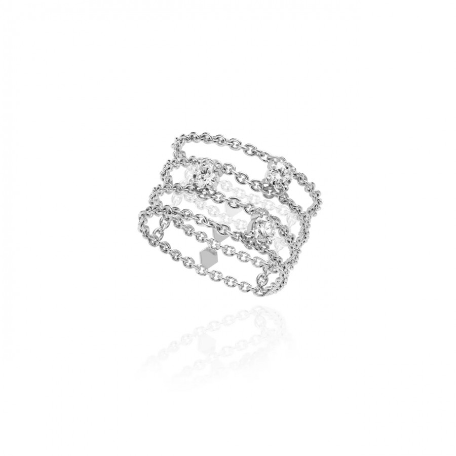 Anello in oro bianco 18 kt a catena soft e diamanti taglio rotondo ct. 0.30 F VS