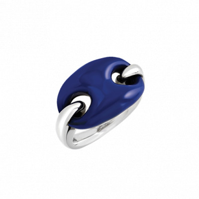 Anello Chantecler maglia marina in argento e bioresina color lapislazzuli scolpita a mano, appartenente alla collezione Et Voilà Capriness.