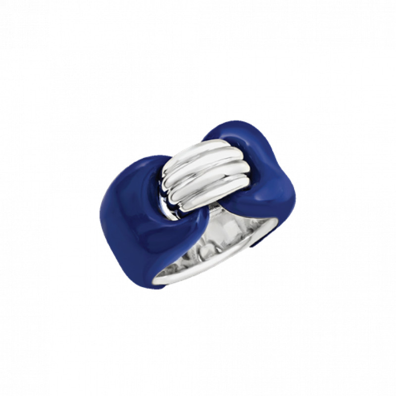 Anello Chantecler fascia maglia marina in argento e bioresina color lapislazzuli scolpita a mano, appartenente alla collezione Et Voilà Capriness.