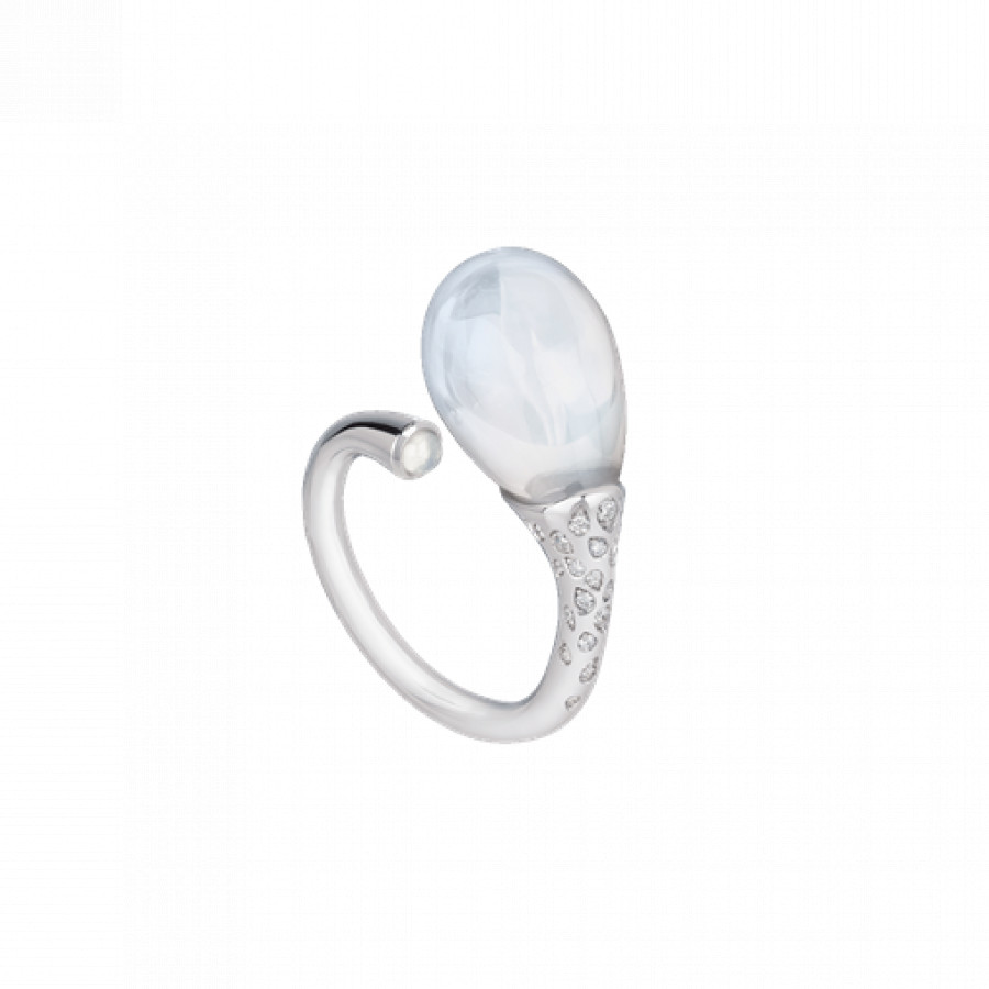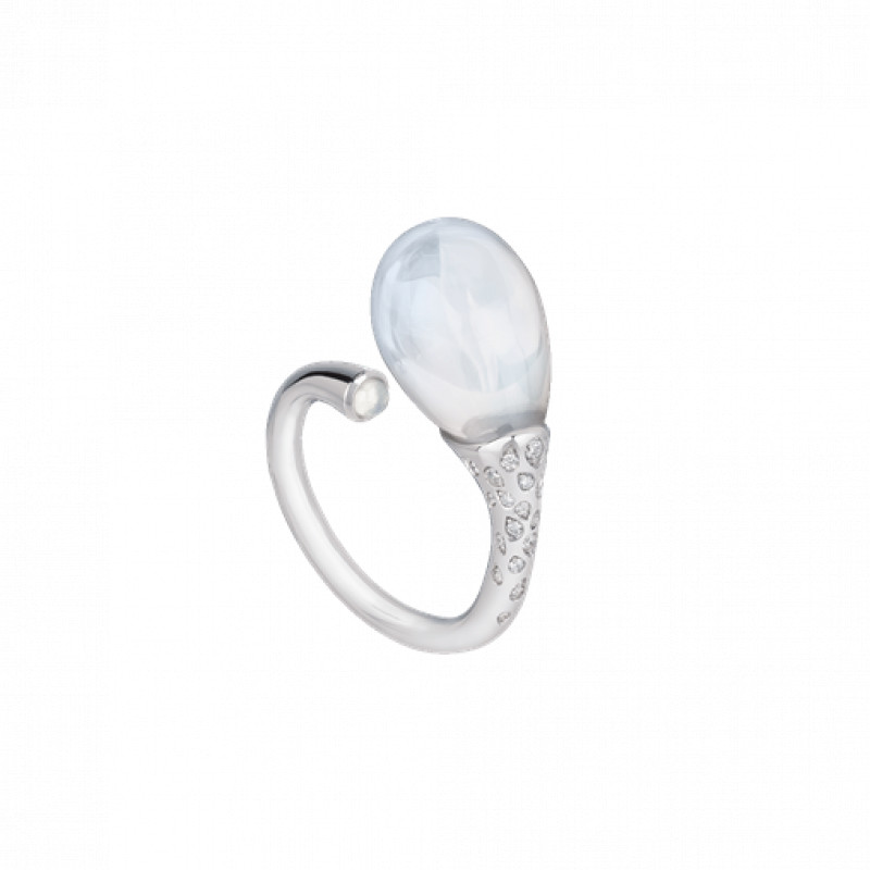 Anello Chantecler Joyful in oro bianco 18Kt, diamanti e poire in cristallo color milky