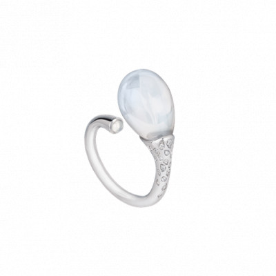 Anello in oro bianco 18Kt, diamanti e poire in cristallo color milky di Chantecler della collezione Joyful.