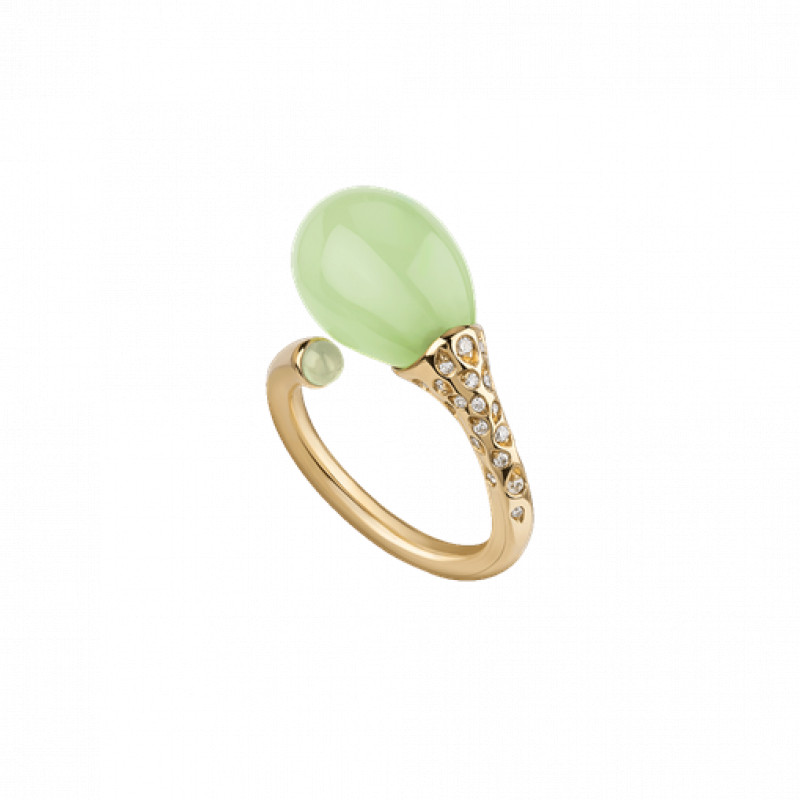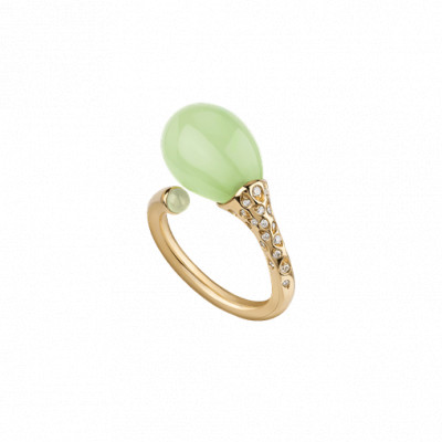 Anello in oro giallo 18Kt, diamanti e poire in cristallo color verde mela di Chantecler della collezione Joyful.
