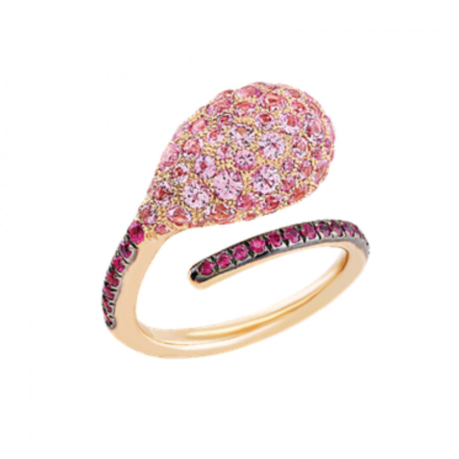 Anello Chantecler in oro rosa 18Kt e zaffiri rosa della collezione Joyful.
