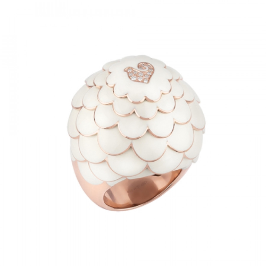 Anello Chantecler in oro rosa, smalto bianco e diamanti della collezione Paillettes.