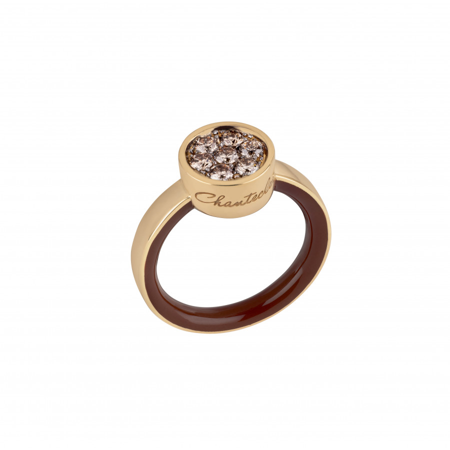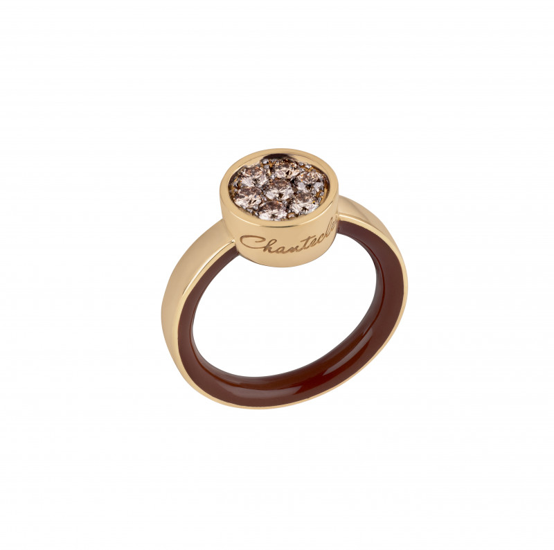 Anello Paillettes in oro giallo 18Kt, pavè di diamanti Champagne e smalto caramello di Chantecler della collezione Paillettes.