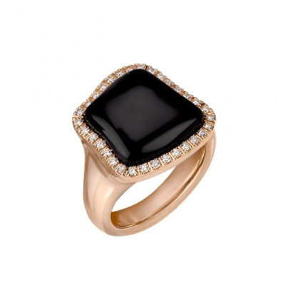 Anello Chantecler in oro rosa 18Kt, diamanti e onice appartenente alla collezione Enchanté.