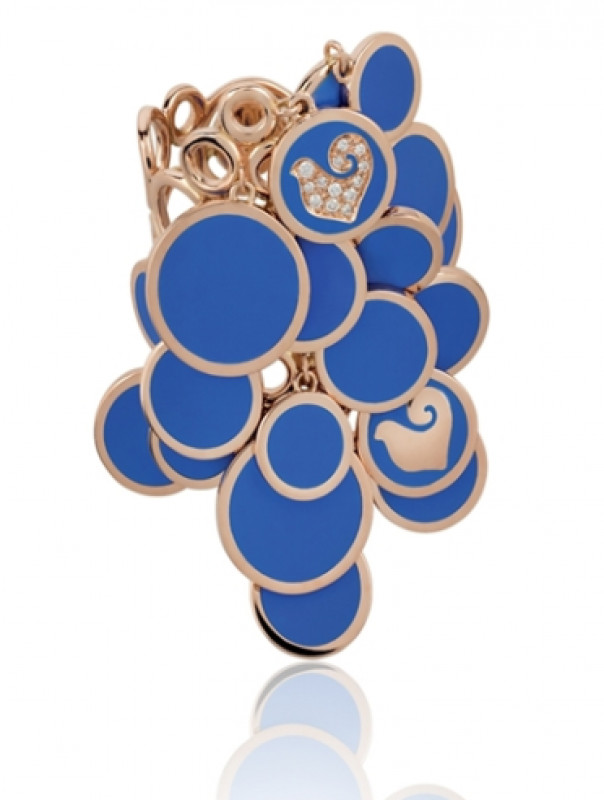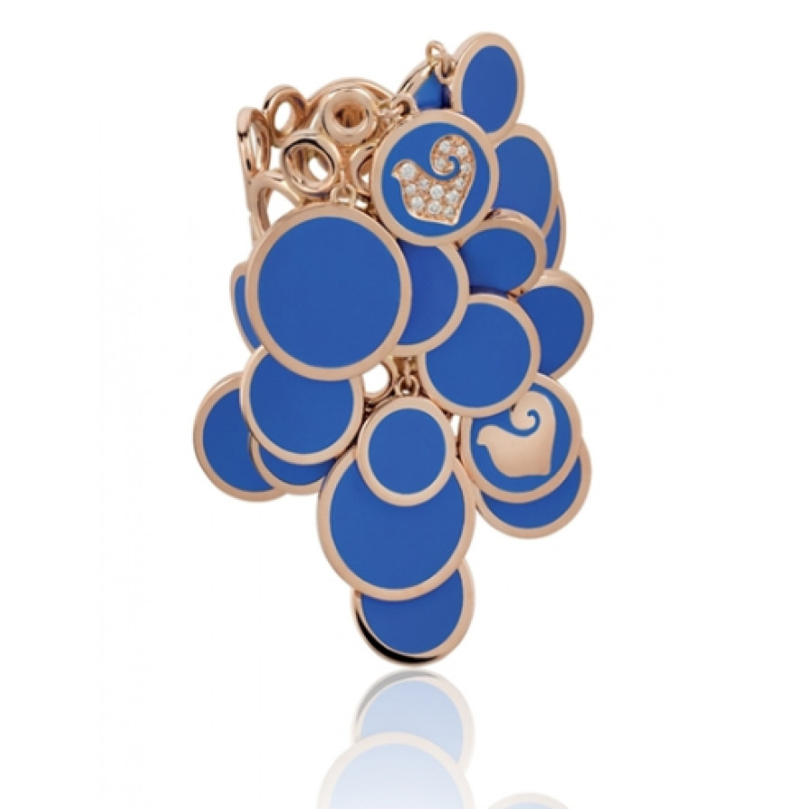 Anello Paillettes a cascata in oro rosa, diamanti e smalto azzurro