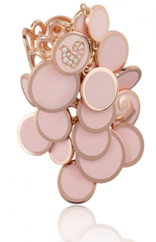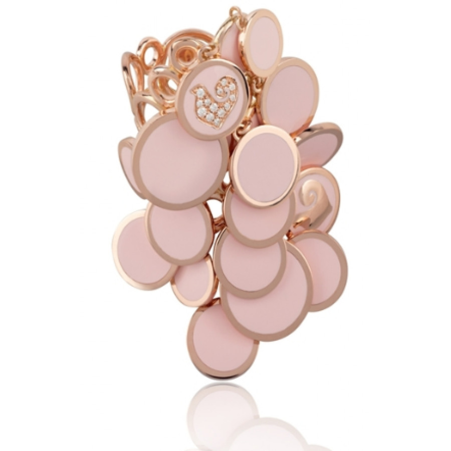 Anello Paillettes a cascata in oro rosa, diamanti e smalto rosa