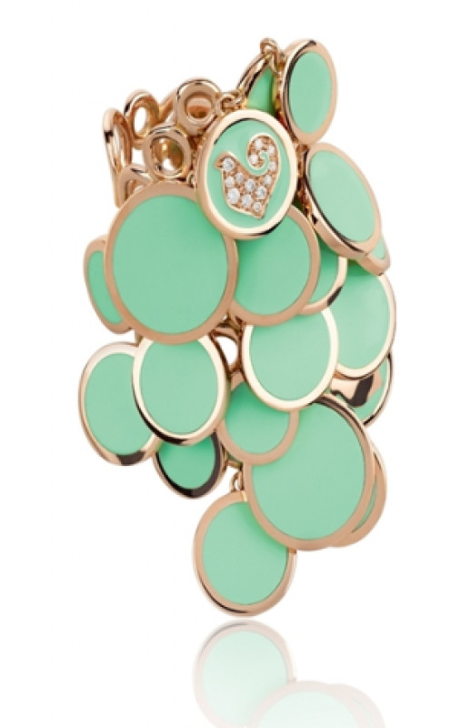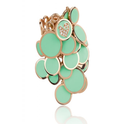 Anello Paillettes a cascata in oro rosa, diamanti e smalto verde